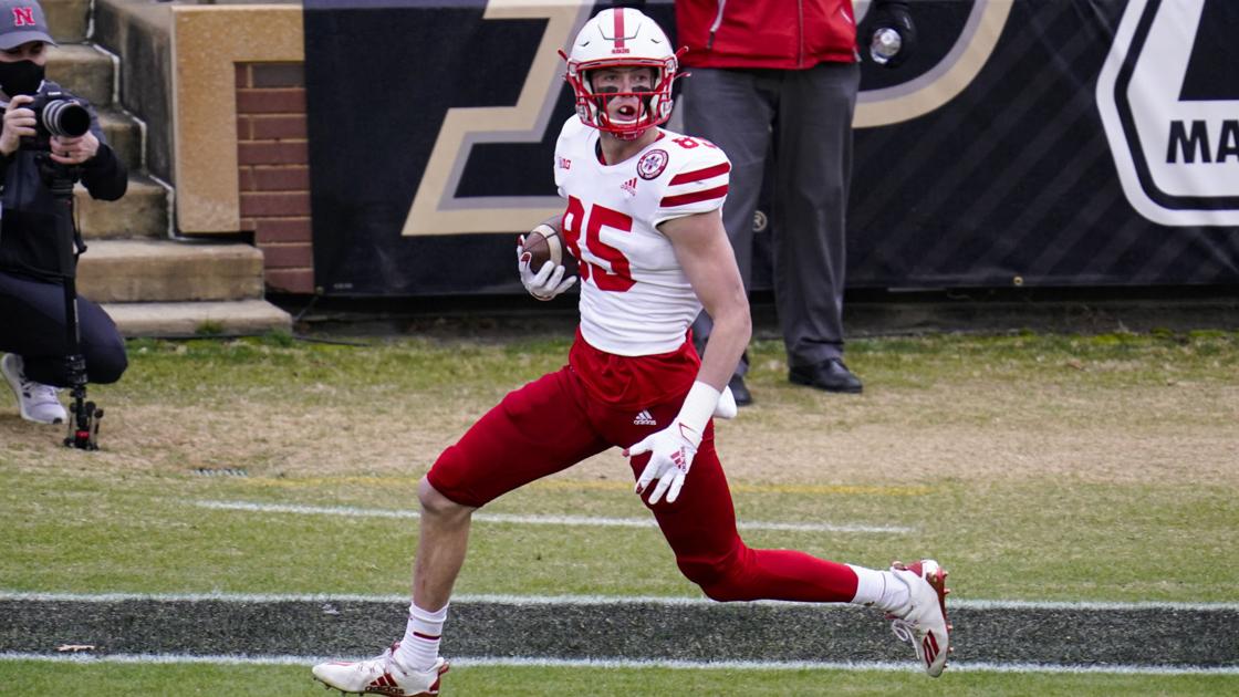 Nebraska wide receiver Wyatt Liewer (85) runs in for a touchdown against Purdue during the second quarter Saturday in West Lafayette, Ind.